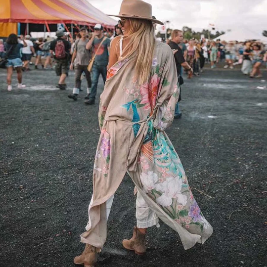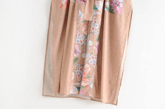 Blush Boho Floral Print Kimono Robe with Tie Waist