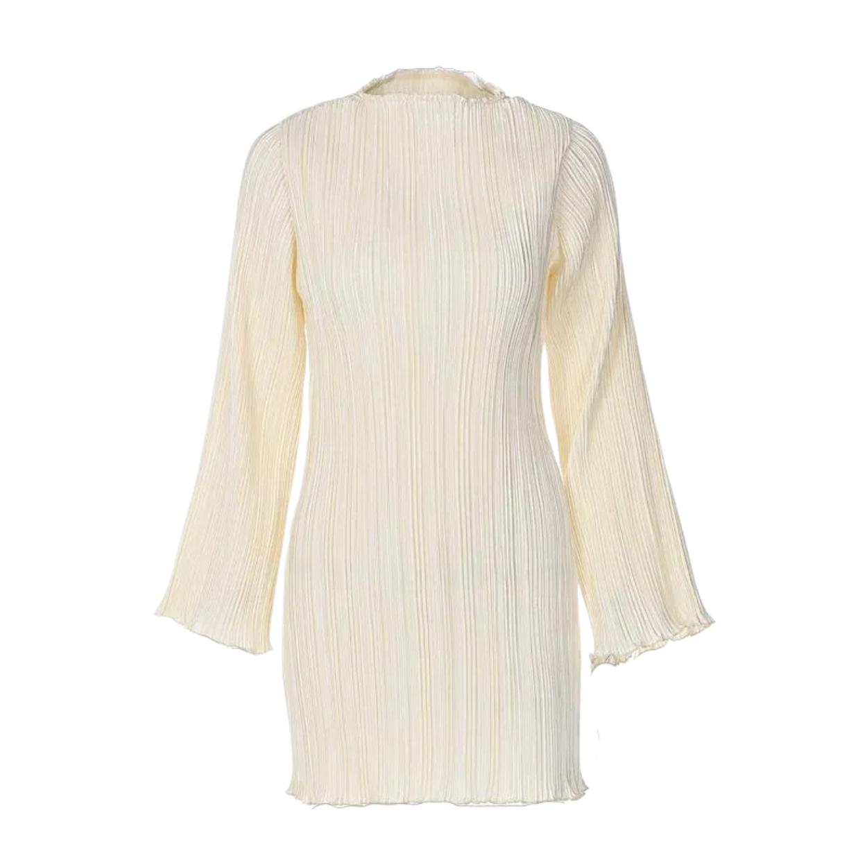 This long sleeve pleated mini dress is designed for to combine style and comfort in one package. Its finely crafted pleats create an elegant movement and the long sleeve add a classy touch to the dress.