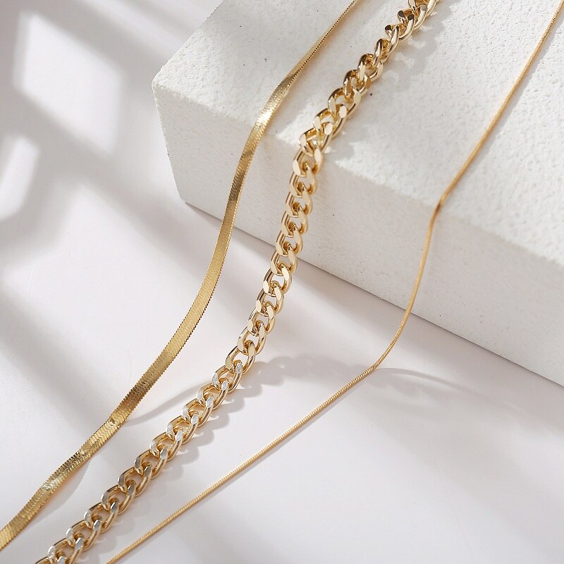 Multi-layer necklace, This Triple necklace style is a bold Snake Blade, chic thick chain and a minimalistic thin chain. The elegant combination for an elevated everyday look, it's a must-have for any fashionable woman.