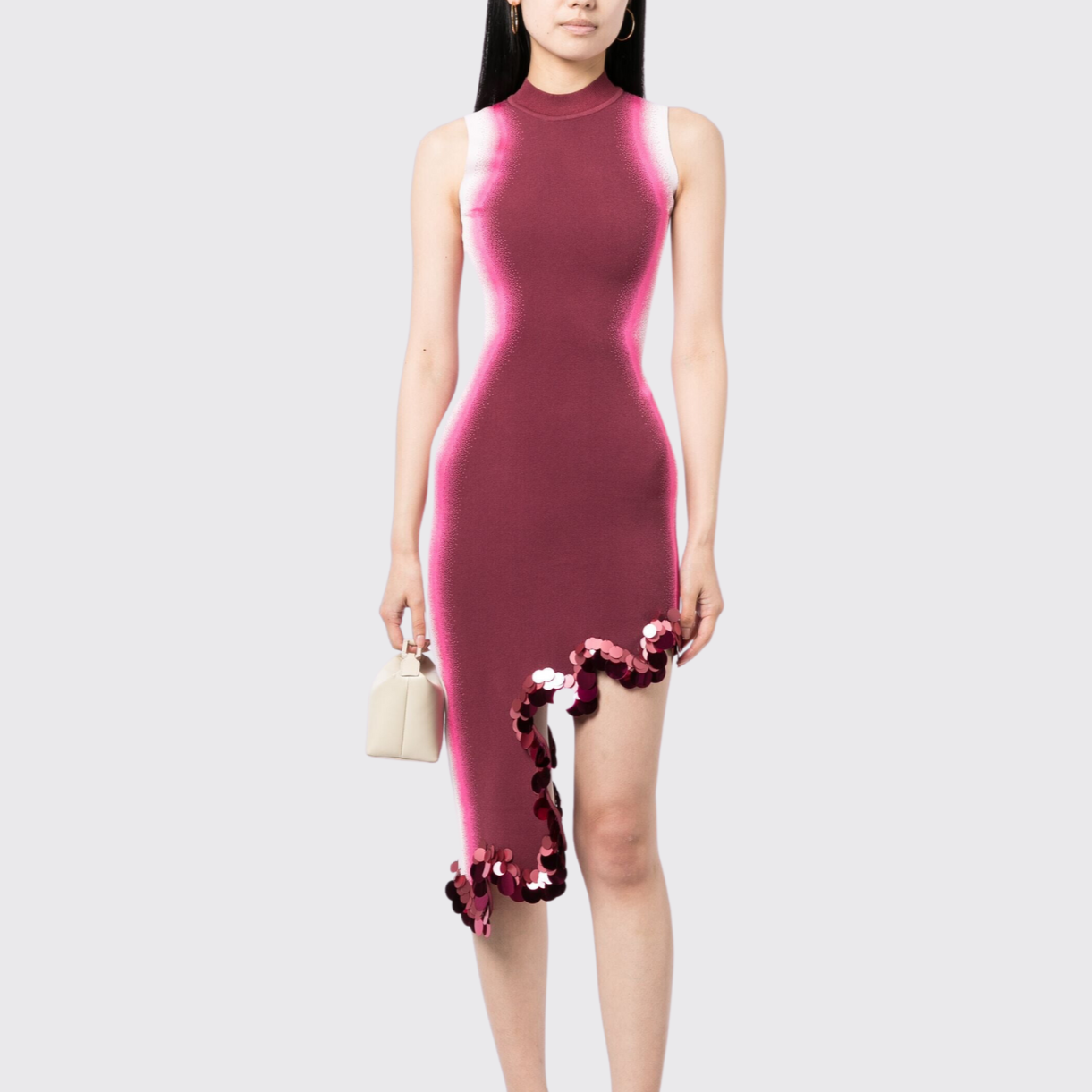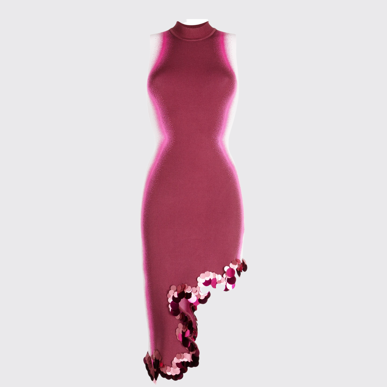 Pink Asymmetric Dress With Wave Detail and Sequin Embellishment